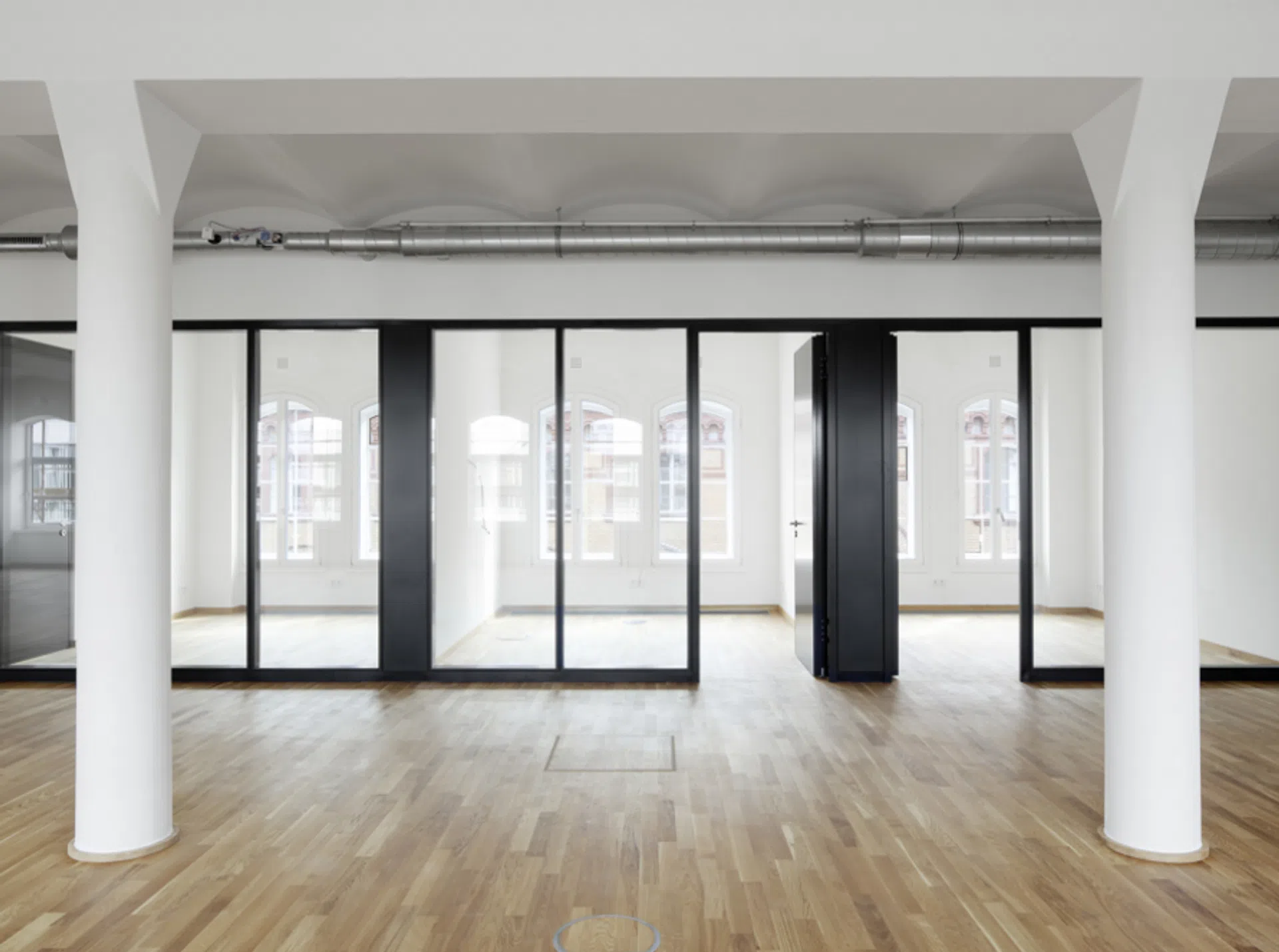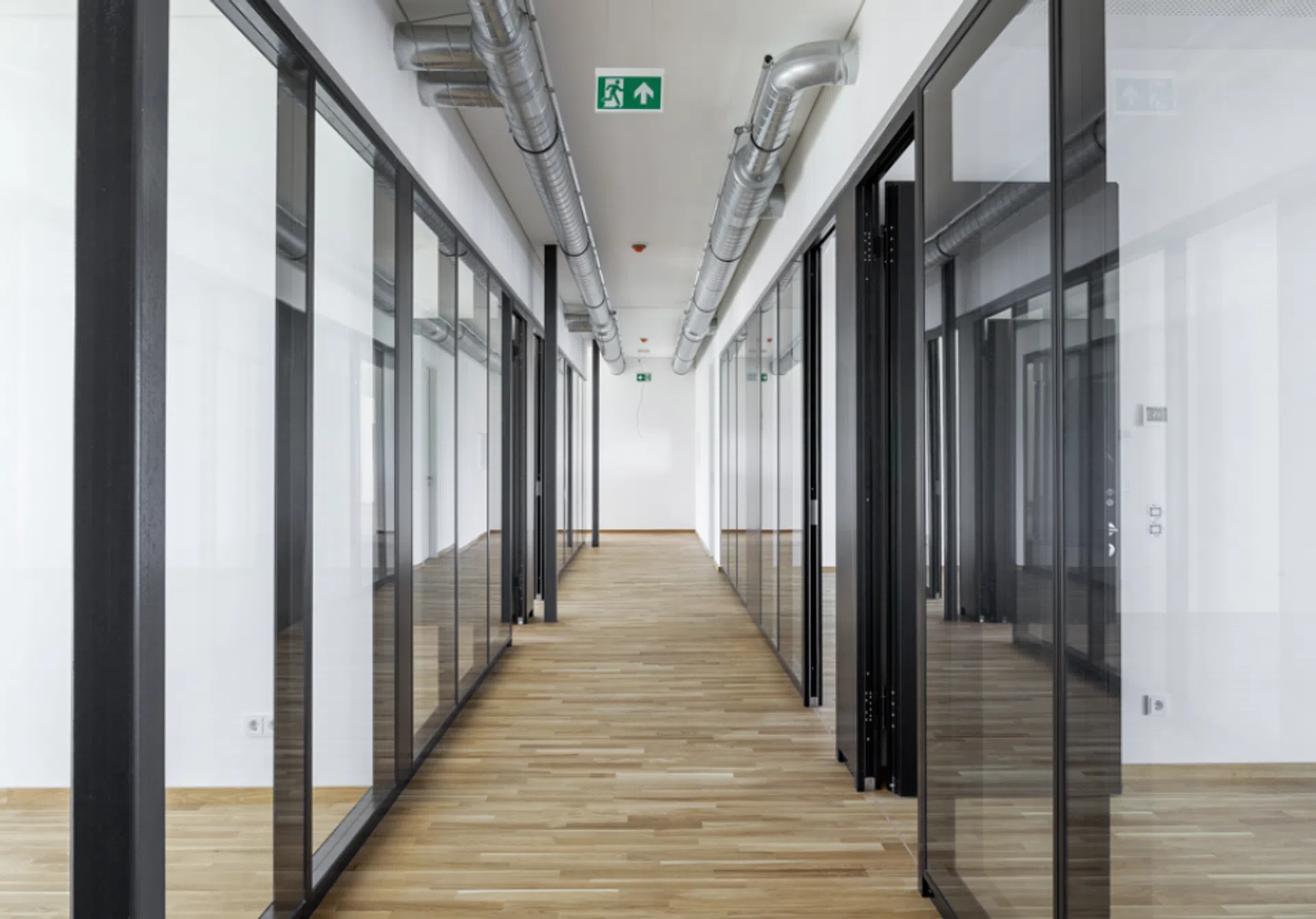 - teilweise Glastüren und Scheibenwände vorhanden