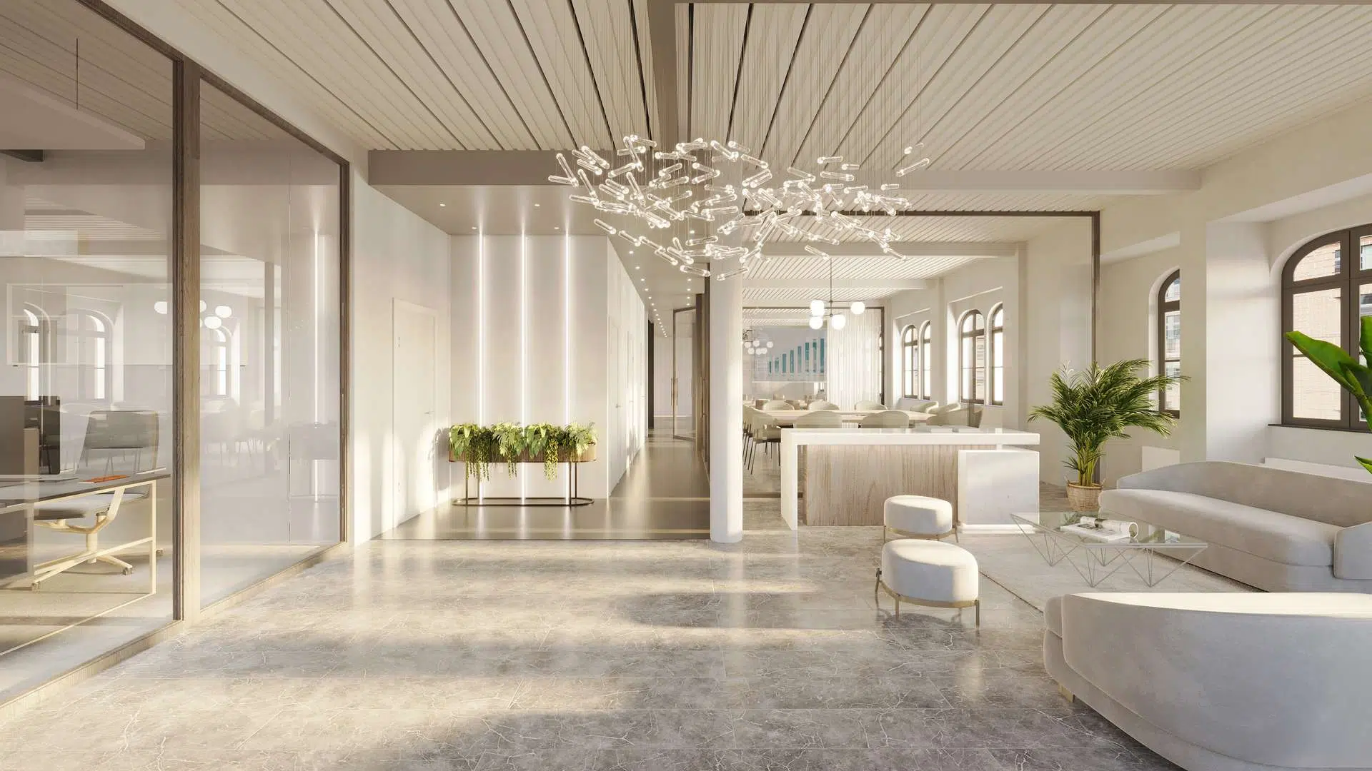 Die Immobilie ist Teil des LUX‑Court beziehungsweise LUX‑Cubes im sogenannten Oberbaum‑City‑Quartier, einem modernen Büroensemble mit hochwertiger Plug‑&‑Play‑Ausstattung. Die Außenbereiche verbinden Gründerzeit‑Charme mit zeitgemäßem Design aus Glas, Holz, Stahl und Stein. Büros bieten repräsentative Deckenhöhen von ca. 3,20–3,60 m und Achsmaße zwischen 3,40–3,60 m.